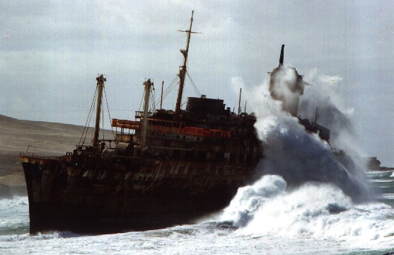 Ehemaliger amerikanischer Luxusliner vor Fuerte gestrandet und inzwischen zerbrochen.